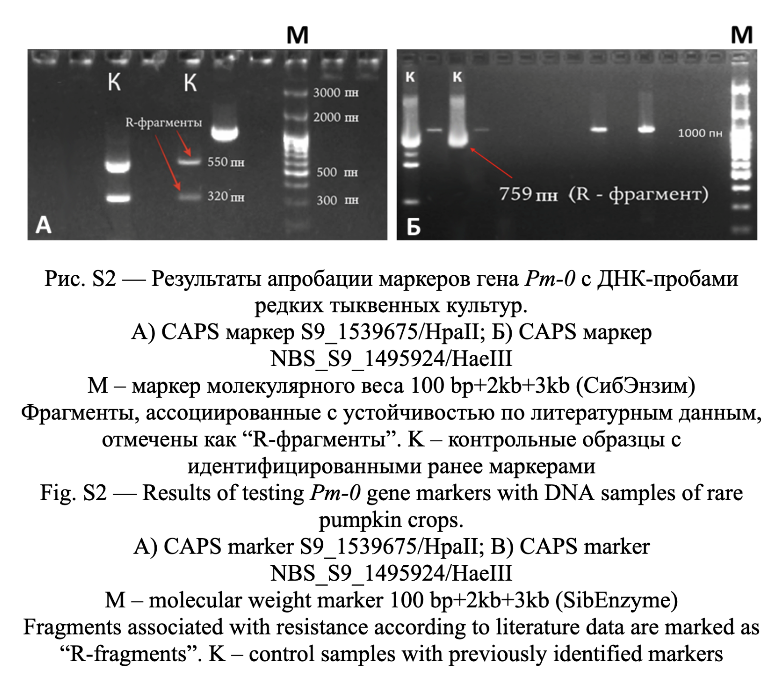 Тема Рис. S2. Результаты апробации маркеров гена Pm-0 с ДНК-пробами редких тыквенных культур.